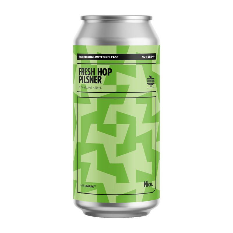An ongoing series of occasional one off releases inspired by the nice ideas captured in Parrotdog's Lyall Bay Brewery. Limited Release 40 is a Fresh Hop Pilsner brewed with whole cone Riwaka hops grown by NZ Hops, flown across the Cook Strait and into the brewhouse with minimal delay to capture peak freshness. Bright and expressive, it delivers juicy citrus and tropical fruit over clean pilsner malt, with resinous hop oils and a crisp, snappy bitterness.